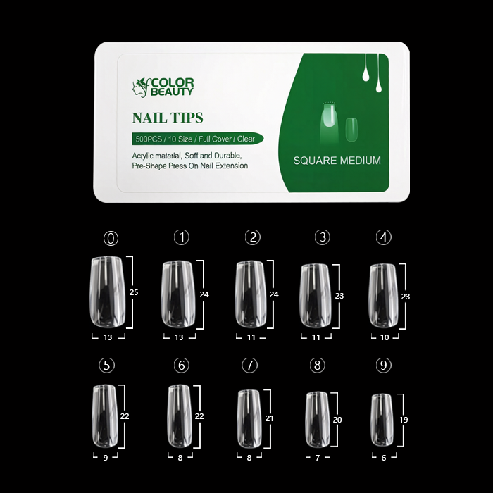 FY COLOR BEAUTY Square-T Nail Tips combine the neatness of square shape and the delicacy of T shape, designed for nail lovers and professional nail salons who pursue personality and high-grade sense. With neat right-angle edges and smooth T-shaped tapered tips, it balances beauty and practicality, suitable for daily commuting, social parties, business occasions and other diverse scenarios. It easily achieves professional-level DIY manicure, and meets the needs of batch production and personalized customization in nail salons.
