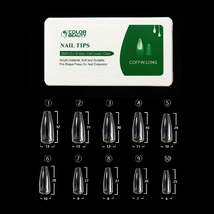 FY COLOR BEAUTY Long T-Shaped Nail Tips, centered on slender lines, combine the delicacy of T-shape and the aura of long length, designed for nail lovers and professional nail salons who pursue personality and cool style. The nail shape narrows naturally from the nail root, with a neat T-shaped fingertip, moderate length and smooth lines. It not only highlights the slenderness of the hands, but also has a sweet, cool and royal sister atmosphere. Suitable for parties, shooting, trendy outfits, nail salon customization and other scenarios, it meets the needs of personal DIY and commercial use, and easily creates eye-catching personalized manicure.