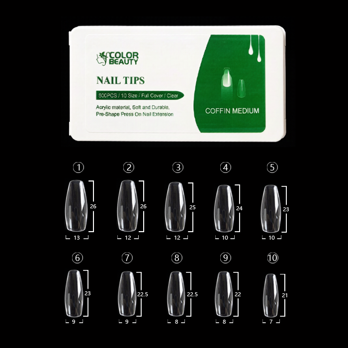 FY COLOR BEAUTY Medium T-Shaped Nail Tips, centered on slender lines, combine the delicacy of T-shape and the moderate aura of medium length, designed for nail lovers and professional nail salons who pursue personality and cool style. The nail shape narrows naturally from the nail root, with a neat T-shaped fingertip, moderate length and smooth lines. It not only highlights the slenderness of the hands, but also has a sweet, cool and royal sister atmosphere. Suitable for parties, shooting, trendy outfits, nail salon customization and other scenarios, it meets the needs of personal DIY and commercial use, and easily creates eye-catching personalized manicure.